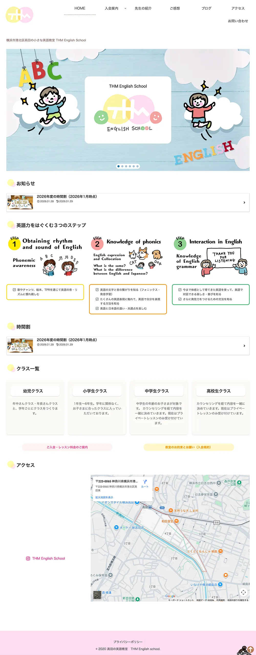 神奈川県横浜市の英語教室「THM English School」様のホームページリニューアルをさせていただきました。