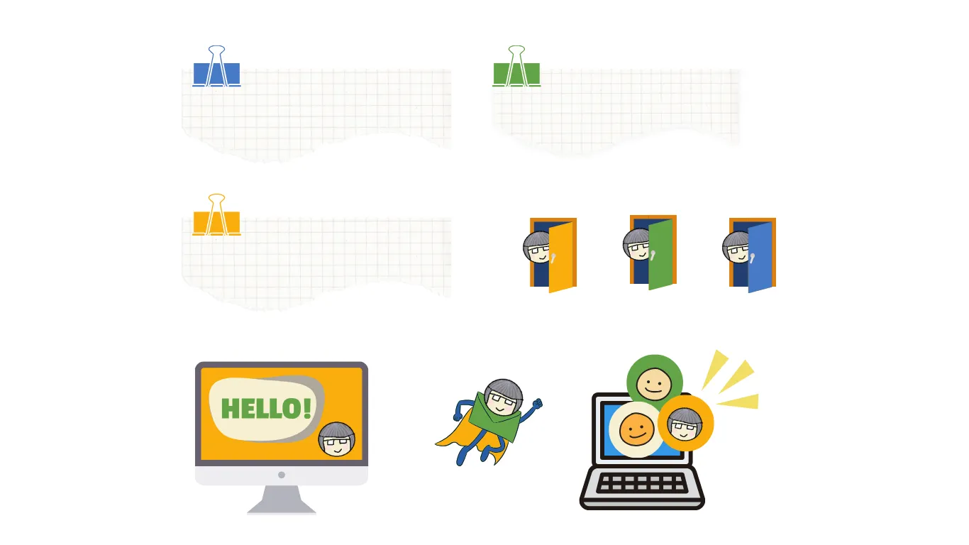 かわいい似顔絵イラストはもともとお使いでしたのでそれをさまざまな場面で使用。